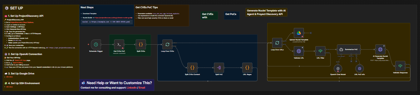 Provide a reliable pipeline that turns public proof-of-concept data into usable detection artifacts. Reduce manual work involved in finding PoCs, extracting exploit details, validating sources, and building Nuclei templates.